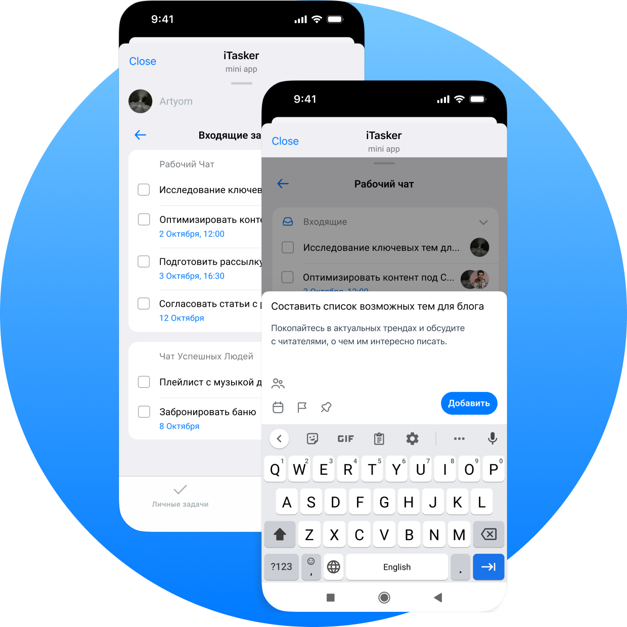 Go to our mini application and create your first personal task or joint project via Telegram chat